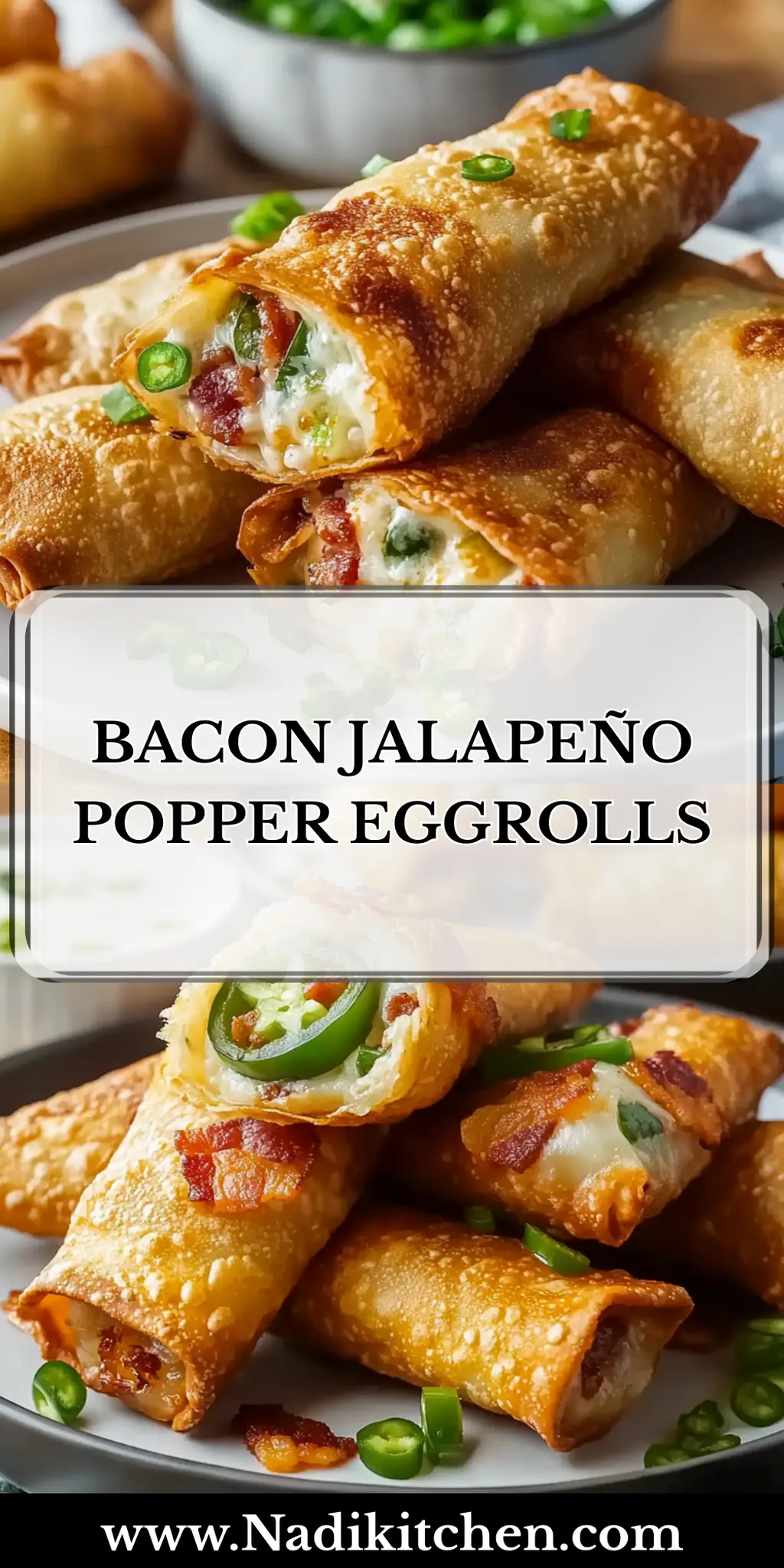 Delicious Bacon Jalapeño Popper Eggrolls filled with creamy cheese, crispy bacon, and spicy jalapeños, perfect for snacks or game day.