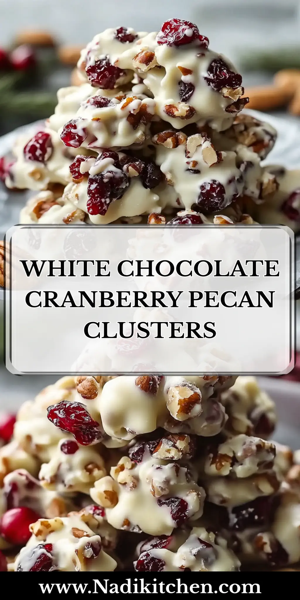 These White Chocolate Cranberry Pecan Clusters are a delightful blend of creamy white chocolate, crunchy pecans, and tart cranberries.